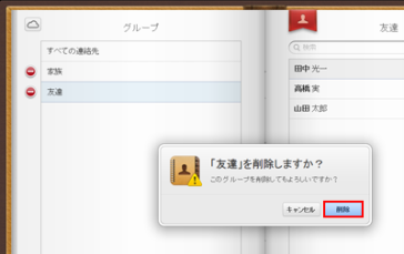 確認メッセージが表示されるので、「削除」をクリックするとグループが削除されます。