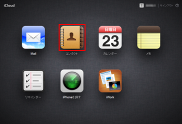 iCloud.comにログイン後、「コンタクト」をクリックします。