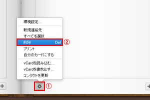 画面下部にある「操作メニュー」ボタンをクリックし、「削除」をさらにクリックすることで、選択した連絡先を削除することができます。