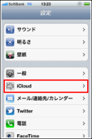 iPhoneのホーム画面上の「設定」をタップし、設定一覧から「iCloud」を選択。